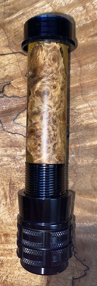Gorgeous Burled Maple Wood Insert. Shiney Gunsmoke Aluminum Hardware or Shiney Black Aluminum Hardware. Wood Grains vary. Each one is unique.