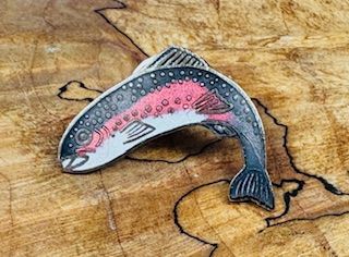 Awesome Vintage Jumping Rainbow Metal Trout Pin. Circa: 1980s. Pin has a single flat-backed clutches for a secure, no spin hold.